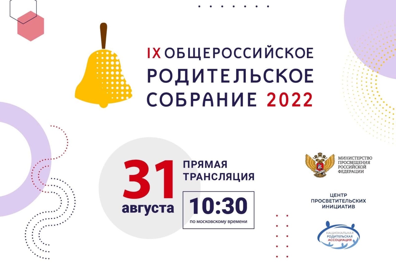 Традиционно перед началом нового учебного года 31 августа в 10:30 (по московскому времени) глава Министерства просвещения Сергей Кравцов проведет IX Общероссийское родительское собрание, на котором расскажет о ходе реализации Президентской программы капитального ремонта школ, родительском контроле за ремонтом и строительством, «золотом стандарте образования», единой образовательной программе и многом другом.